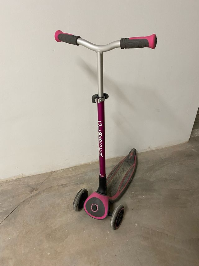 Detalles del productoPatinete infantil de tres ruedas en color rosa y plateado. Ideal para los más pequeños.