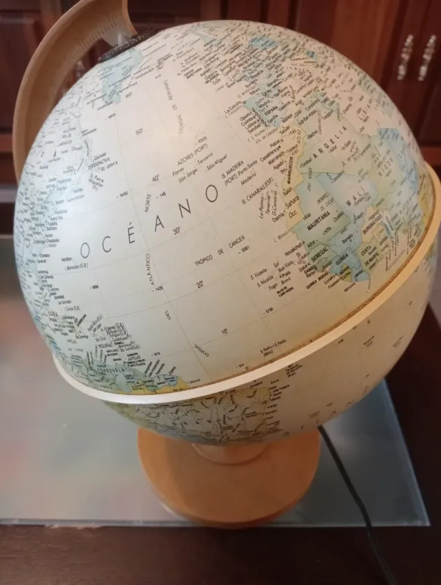 Globo terráqueo con iluminación y soporte para girarlo. - Representación detallada de continentes y océanos. - Ideal para decoración o aprendizaje.