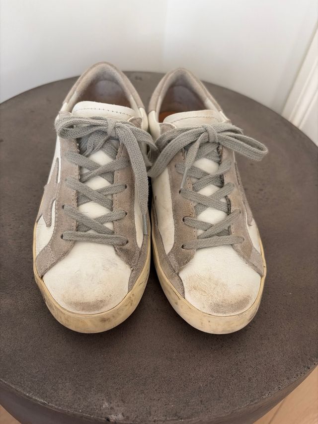 Detalles del productoZapatillas deportivas Golden Goose para niño en talla 31. Combinan cuero blanco y ante gris.