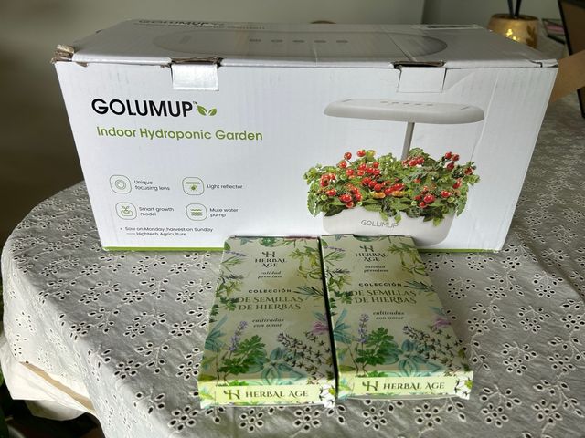 Detalles del productoSistema de cultivo hidropónico interior GOLUMUP. Ideal para cultivar hierbas frescas en casa. Esta totalmente NUEVO, a estrenar. Incluye un pack de dos paquetes de semillas.