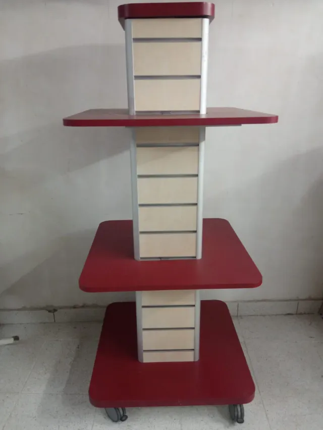 Detalles del productoGóndola expositora de cuatro niveles con un diseño moderno y funcional. Ideal para exhibir productos.