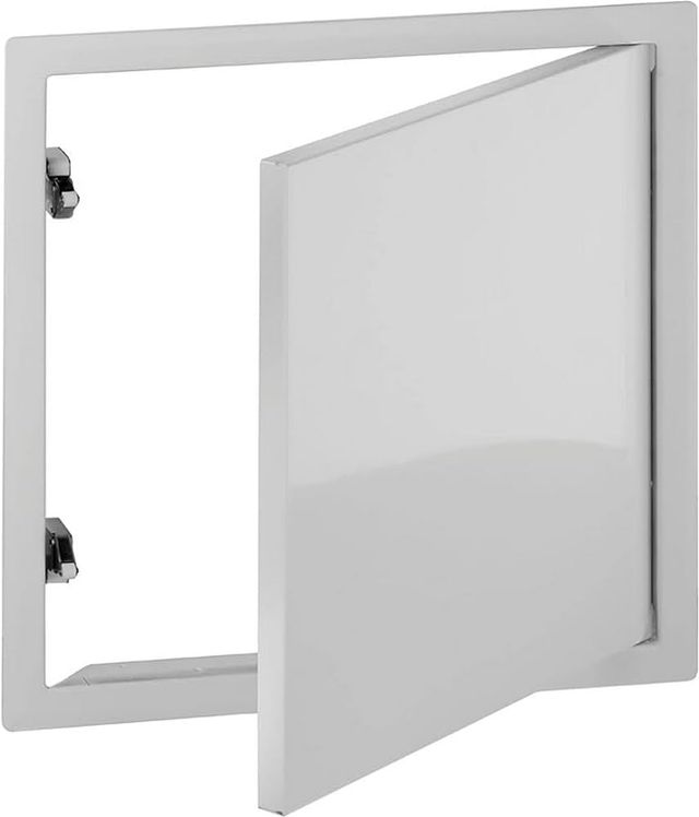 Puerta de registro de acero blanco con bisagra para montaje en pared o techo. Ideal para accesos en yeso o pladur, con cierre limpio y hojas desmontables para uso profesional y doméstico. LPNWE331736462 - DER.283