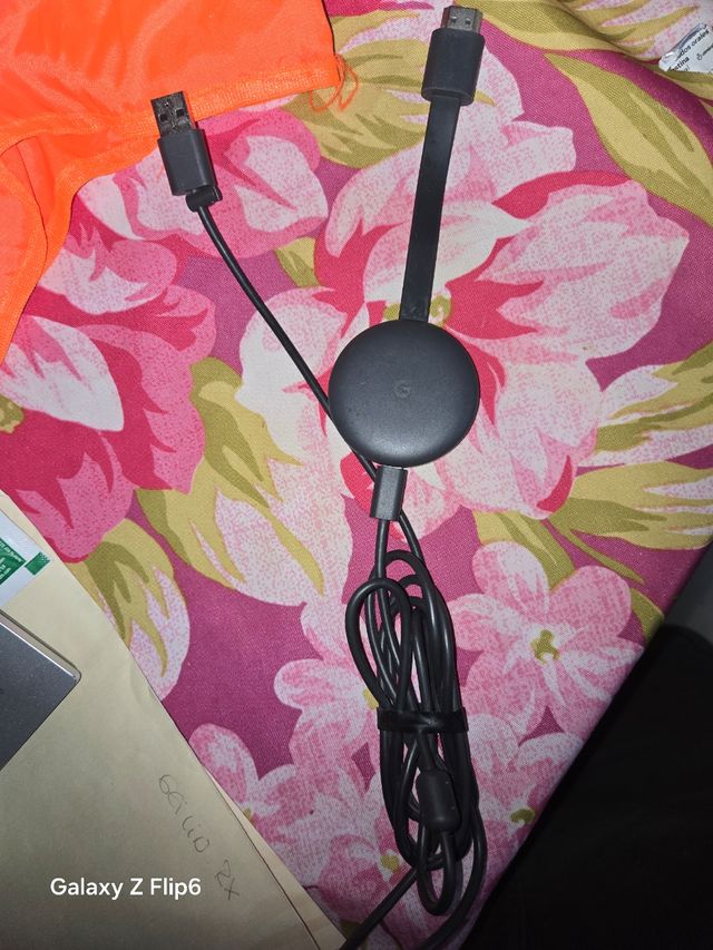 Dispositivo de streaming Google Chromecast en buen estado. - Cable HDMI incluido. - Adaptador de corriente USB.