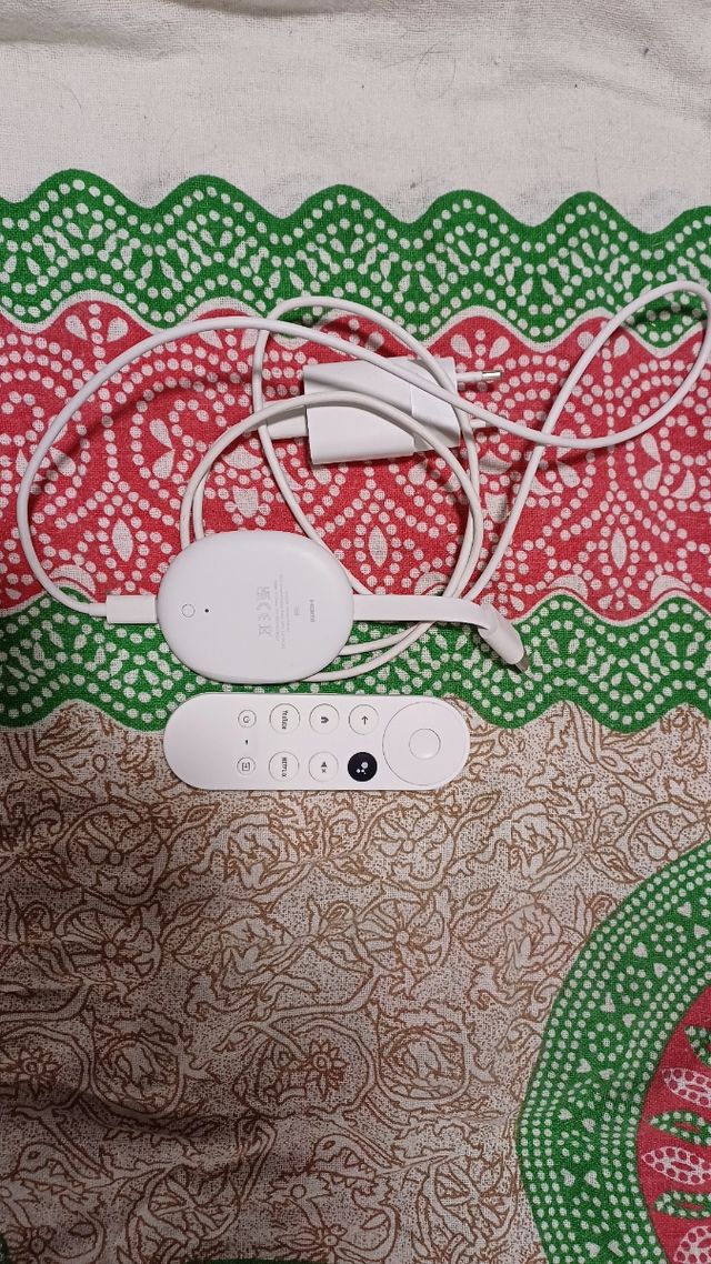 Detalles del productoDispositivo de streaming Google Chromecast 4K en perfecto estado. Incluye control remoto y cable de alimentación.
