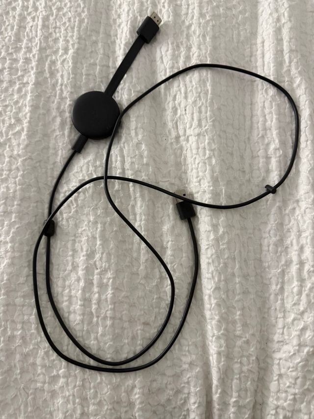 Dispositivo Google Chromecast para tu televisión. - Diseño redondo y compacto. - Cable HDMI integrado.