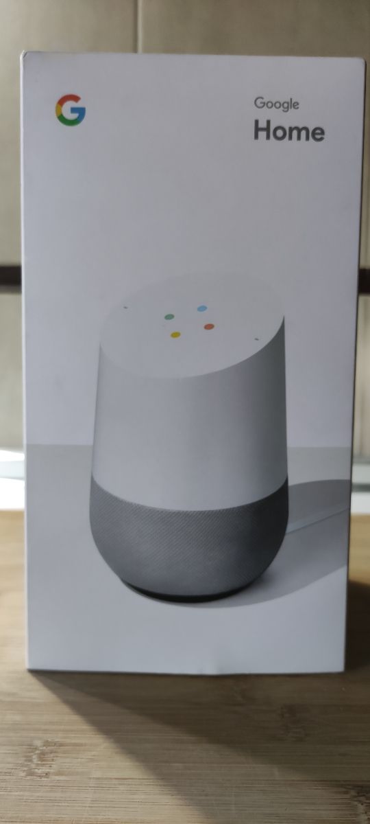 Altavoz Google sin estrenar, aunque la caja está abierta para ver el producto.