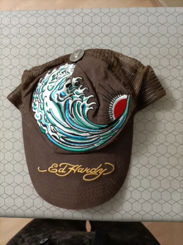 Gorra Ed Hardy Marrón con Diseño de Olas