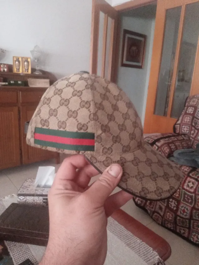 Gorra Gucci Marrón con Tiras Verdes y Rojas