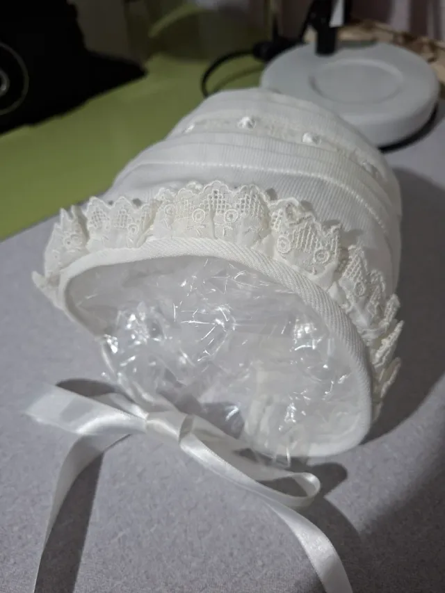 Precioso gorrito para bebé, ideal para ocasiones especiales. - Color blanco. - Adornado con delicado bordado - Cierre con lazo de cinta de raso.