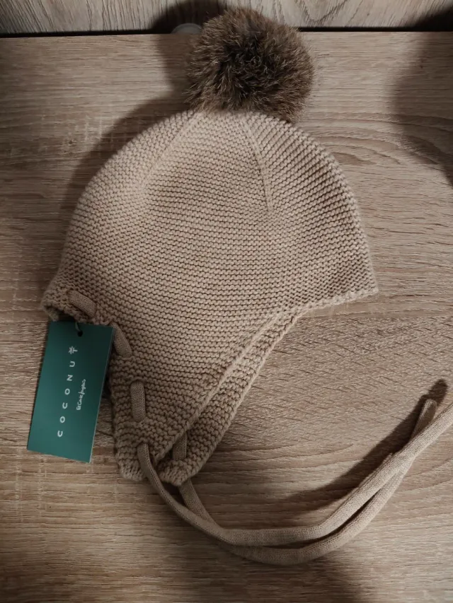 Gorro bebé Coconut pompón beige. CON ETIQUETA