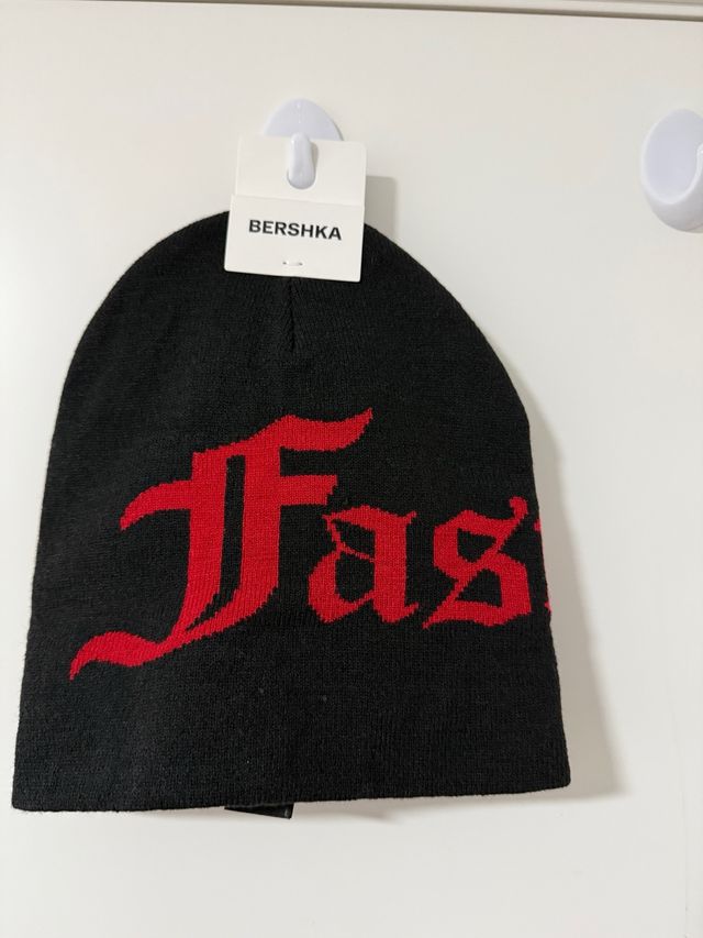 Gorro Bershka Negro y Rojo