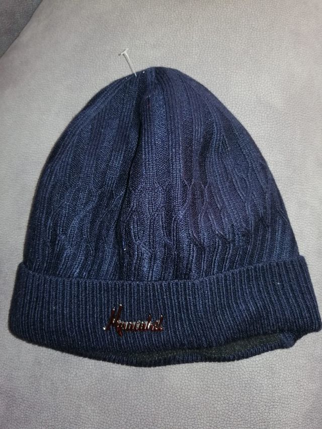 Gorro de lana azul oscuro con letras frontales,nuevo sin estrenar.