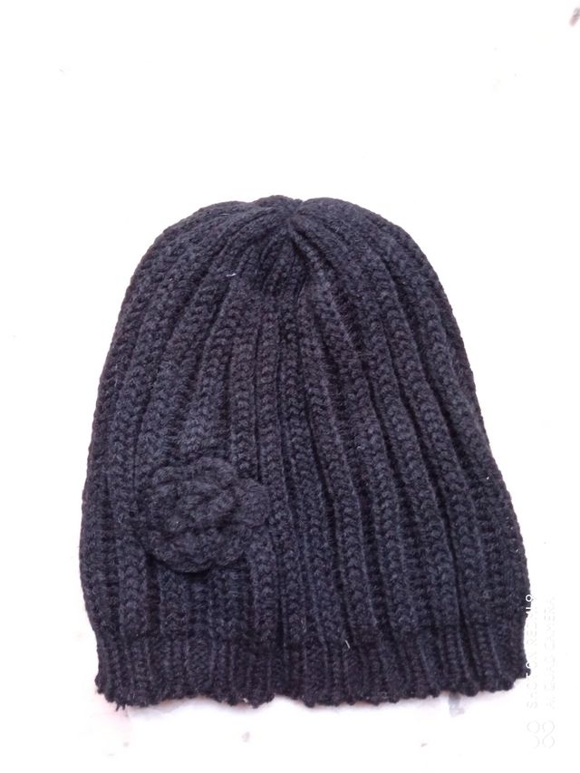 gorro de lana negro con flor d crochet nuevo