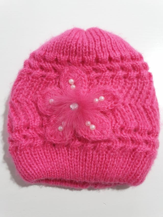 Gorro de lana rosa para niña con flor
