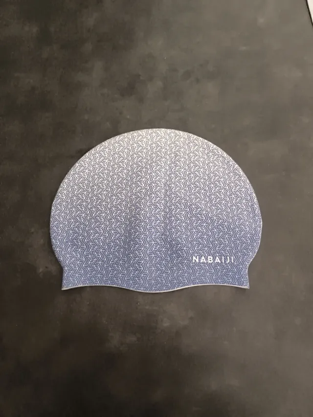 Gorro de natación con un diseño moderno y estampado geométrico. Es cómodo y se ajusta bien. - Marca: Nabaiji - Diseño: Estampado geométrico degradado - Material: Silicona