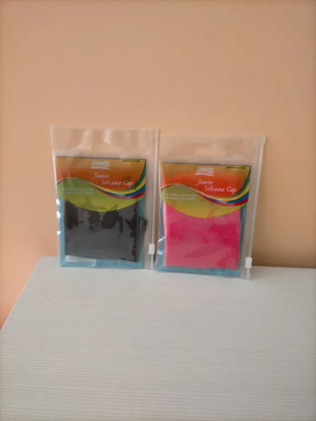 Dos gorros de natación Zoggs Junior Silicone. - Gorro de color negro. - Gorro de color rosa fucsia. -3€ unidad.Los 2 gorros 5€