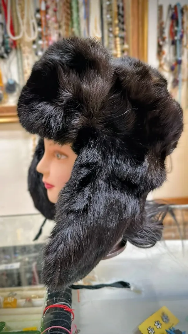 Gorro estilo aviador piel negro/marrón