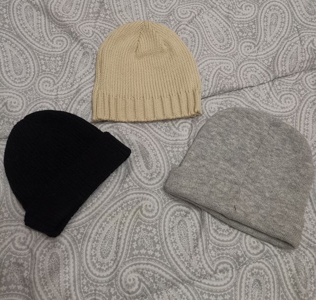 Lote de 3 Gorros de invierno en tonos negro, beige y gris, en muy buen estado, talla única.