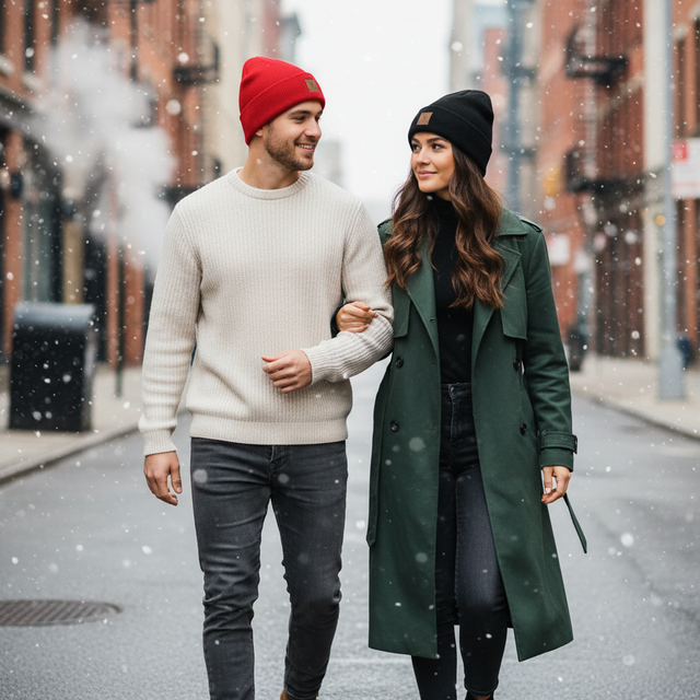 Gorro Invierno Punto Parejas Negro y Rojo - 2 uds