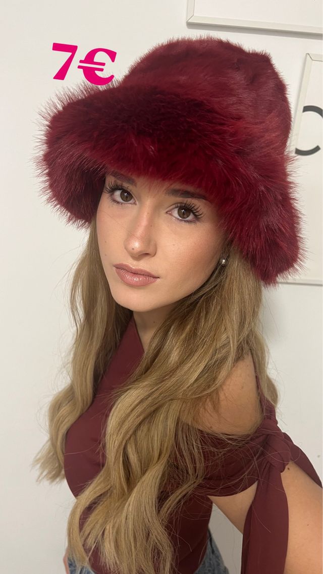 Gorro de pelo suave y llamativo. - Diseño de pelo sintético. - Color rojo intenso.granate