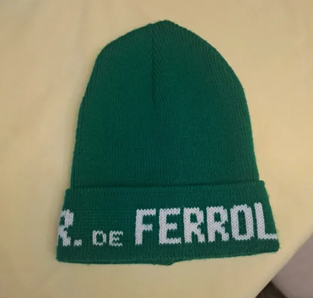 Gorro de lana del Racing de Ferrol, un accesorio vintage para los aficionados. - Diseño de punto. - Color verde con letras blancas. - Año 2000