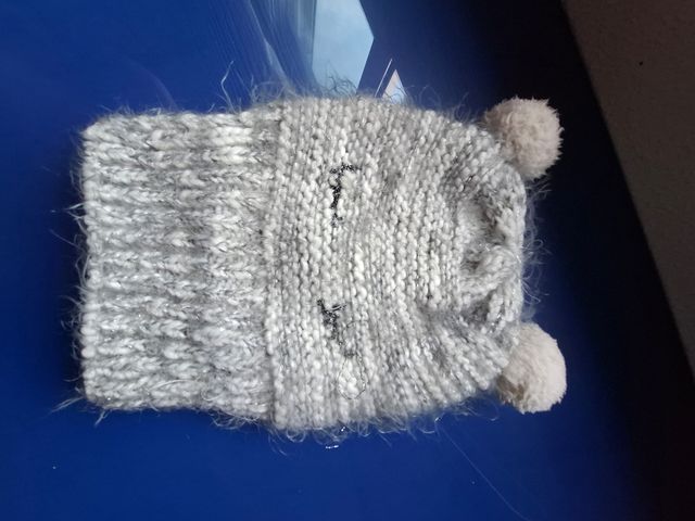 Gorro tejido gris con pompones