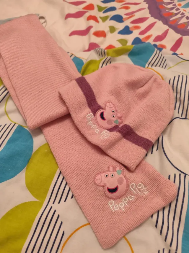 Conjunto de gorro y bufanda para niña con diseño de Peppa Pig.