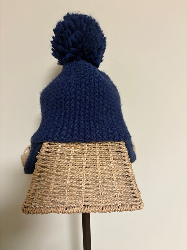 Conjunto de gorro y manoplas de lana en color azul marino. El gorro tiene un pompón en la parte superior. - Gorro de punto grueso. - Pompón de lana. - Manoplas a juego.