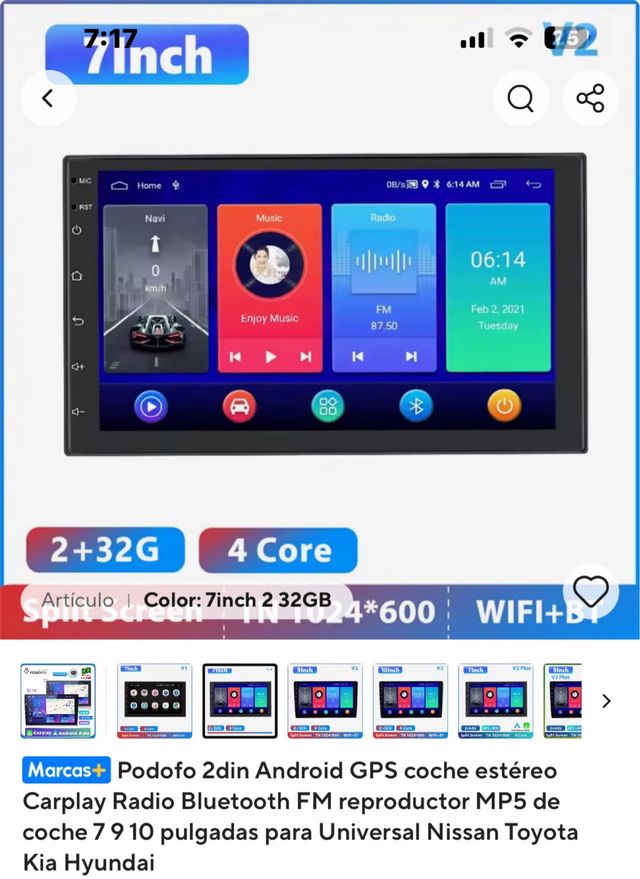 Pantalla táctil para coche con sistema Android y GPS integrado. - Tamaño de pantalla: 7 pulgadas. - Resolución: 1024*600. - Conectividad: WiFi y Bluetooth.