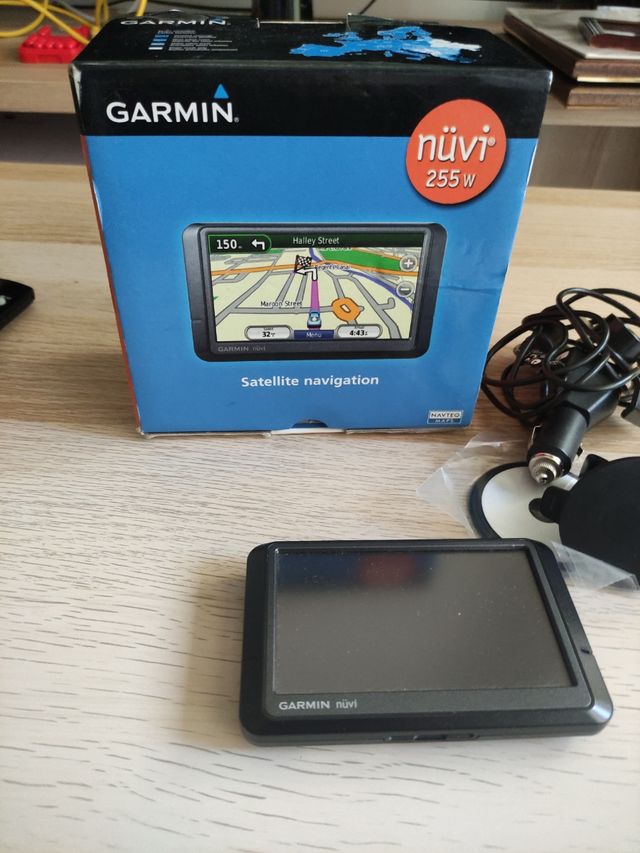 Navegador GPS Garmin nüvi 255w para coche. Incluye el dispositivo y sus accesorios. - Pantalla de navegación. - Soporte para coche. - Cargador para coche.