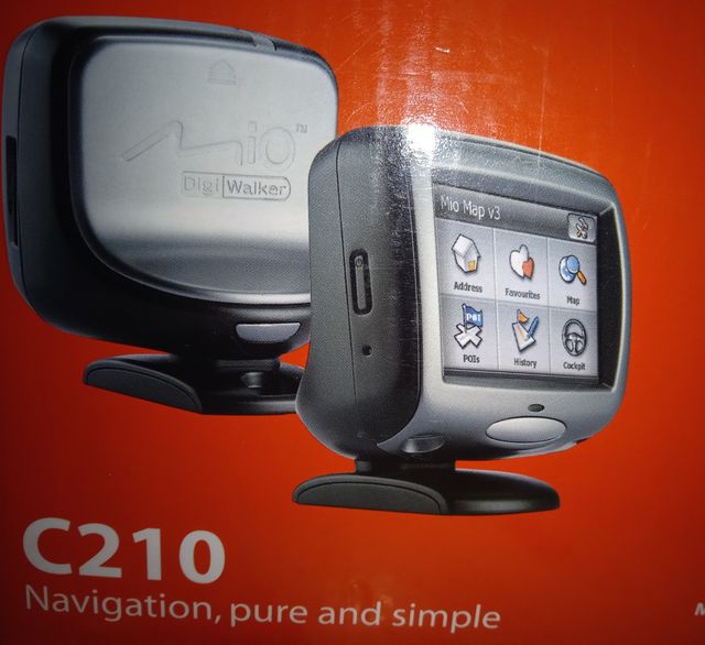 Navegador GPS Mio C210. - Pantalla táctil. - Interfaz intuitiva con iconos de acceso rápido. - Diseño compacto y portátil.