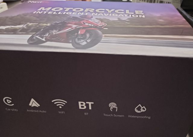 Navegador inteligente para motocicleta. - Pantalla táctil. - Resistente al agua. - Compatible con Car-play y Android Auto. - Conectividad WiFi y Bluetooth.