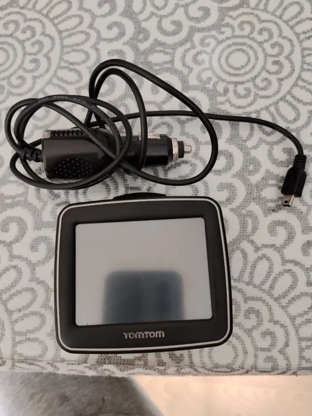 Dispositivo GPS Tomtom con su cable de carga para coche. - Pantalla a color. - Conexión USB. - Incluye cargador de mechero.