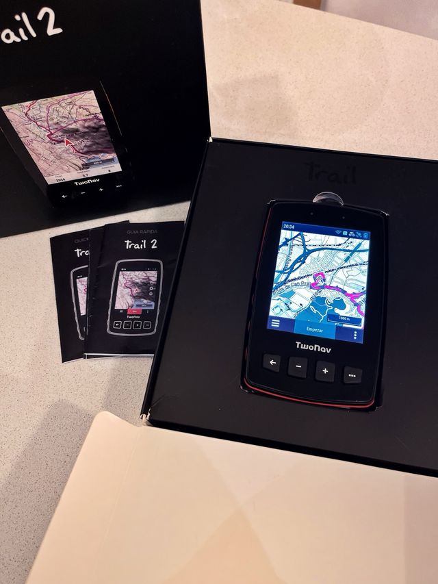 Dispositivo GPS TwoNav Trail 2. - Pantalla a color. - Botones físicos. - Incluye manual de inicio rápido. - Pantalla tactil Con caja, papeles,etc...se puede ver y probar