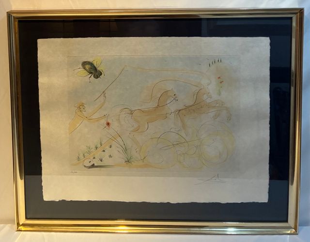 Grabado de Salvador Dalí i Domènech, cuya obra representa el Bestiario de La Fontaine "dalinisé".