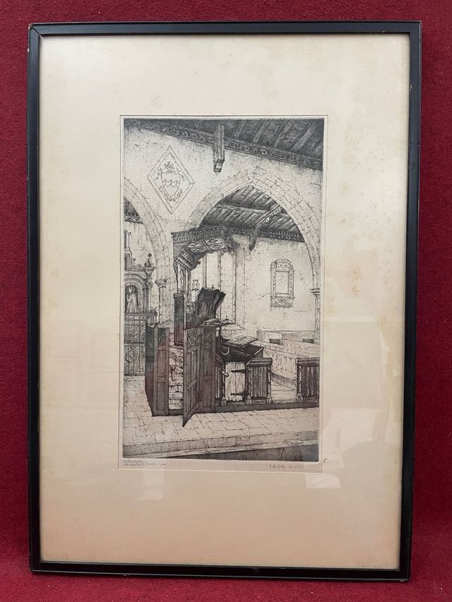 Grabado Victoriano Church in Sussey Richard Nibbs