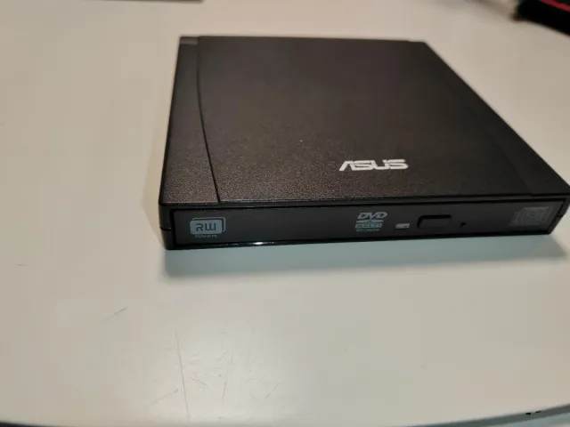 Grabador de DVD externo ASUS con conexión USB. - Diseño compacto y portátil. - Compatible con discos DVD±R DL.