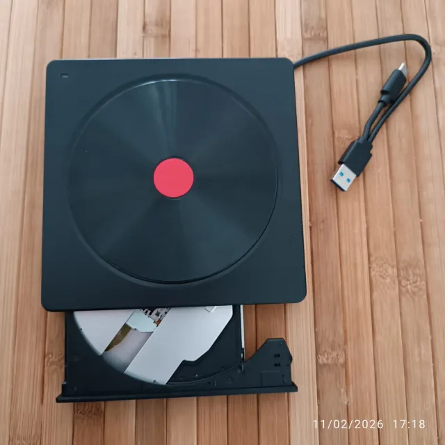 Unidad externa de CD y DVD con conexión USB para tu ordenador. Es compacta y fácil de usar. - Diseño en color negro. - Incluye cable USB.
