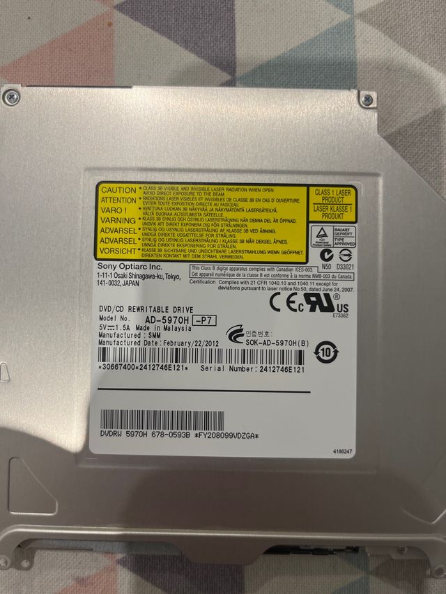 Detalles del productoGrabadora de DVD y CD de la marca Sony Optiarc, modelo AD-5970H.