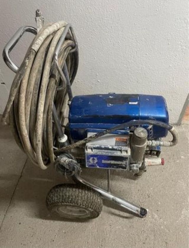 Detalles del productoequipo de pintura maquina de proyectar pintura, pinturas plasticas barnices esmaltes temple etc y todo tipo de masillas aguaplast estumescente brea etc muy potente se ouede utilizar dos mangueras de trabajo a la vez precio poco negociable vendo porque un familiar se jubilo