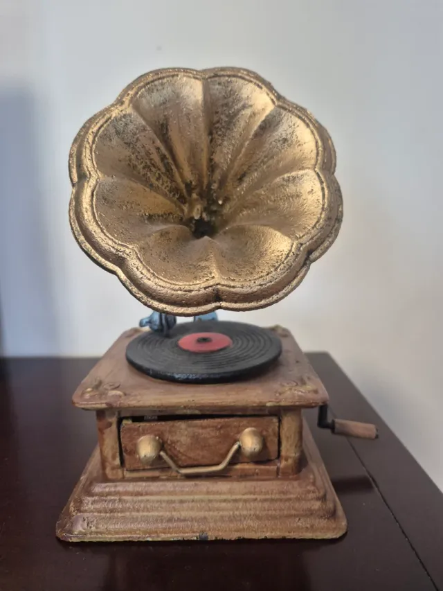 Detalles del productoEste gramófono antiguo es una pieza decorativa con un diseño clásico.