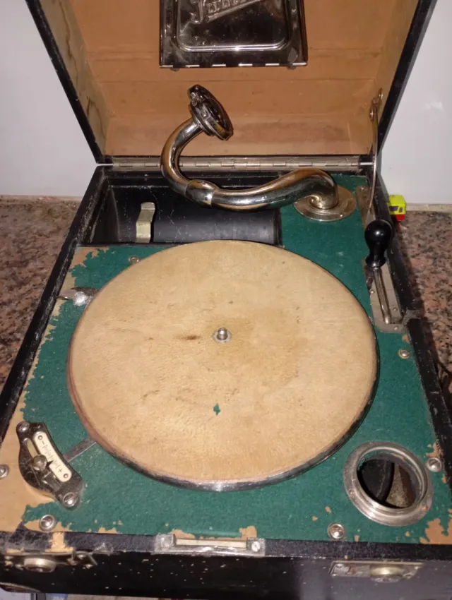 Detalles del productoGramófono antiguo en su maletín. Escucho ofertas puntos de carcoma por tratar. Lleva mucho tiempo guardada.