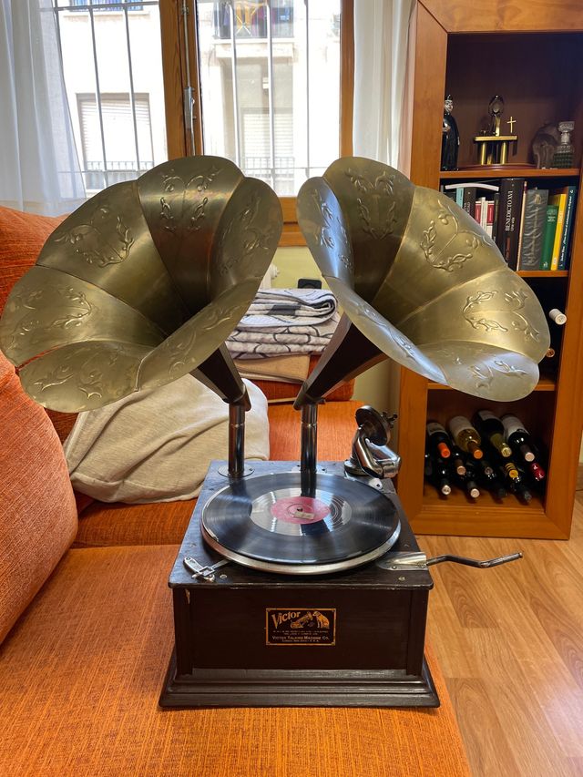 Detalles del productoPrecioso gramófono con doble trompa decorada.