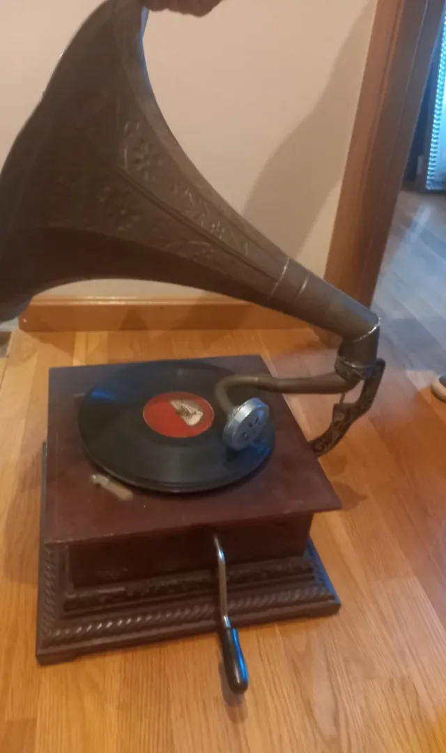 Detalles del productoGramófono antiguo de la marca His Master's Voice.