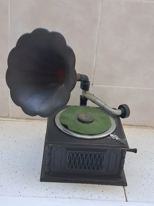 Detalles del productoGramola antigua con un diseño clásico y elegante, ideal como pieza decorativa.