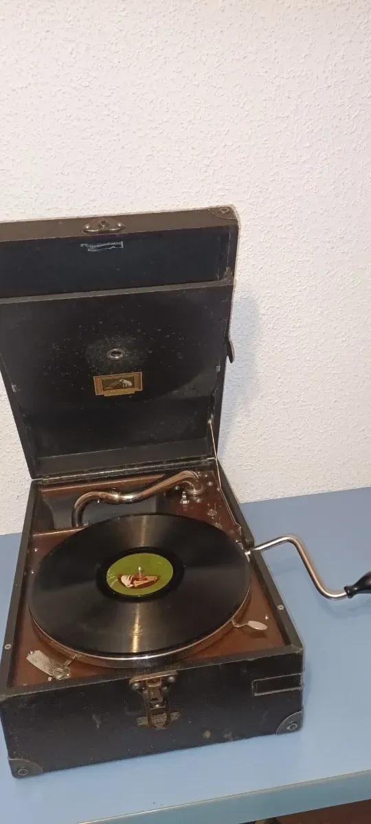 Detalles del productoGramola antigua portátil, ideal para coleccionistas.