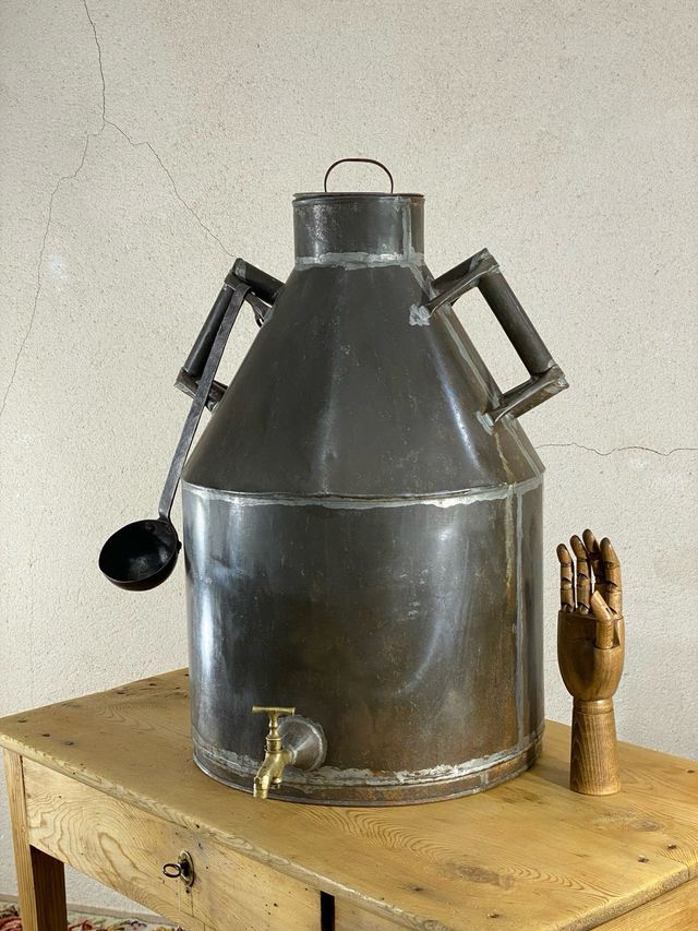 etiquetas: Olla aceitera lechera cantaro recipiente bidón depósito metal forja hierro