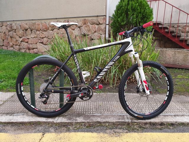 Carbono, grupo completo Sram X0, casette y cadena Shimano, ruedas DT Swiss, cubiertas Continental Xking y Raceking 2.2, horquilla Rock Shox SID, manillar y potenia Ritchey, puños ESI Grips, portabidones Zipp carbono, tija vcls monolink, sillin Selle Italia SLR monolink.
