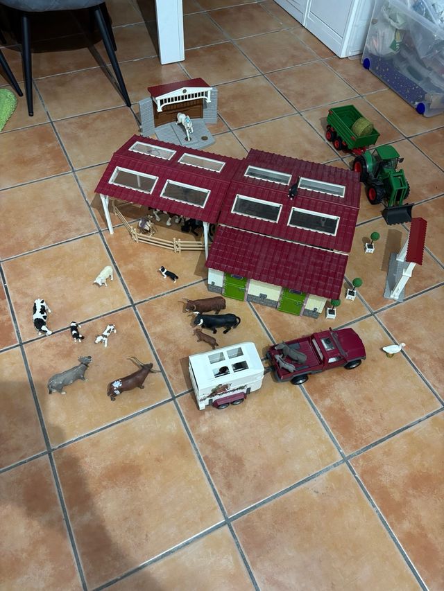 Detalles del productoConjunto de granja de la marca Schleich, que incluye varias colecciones y accesorios.
