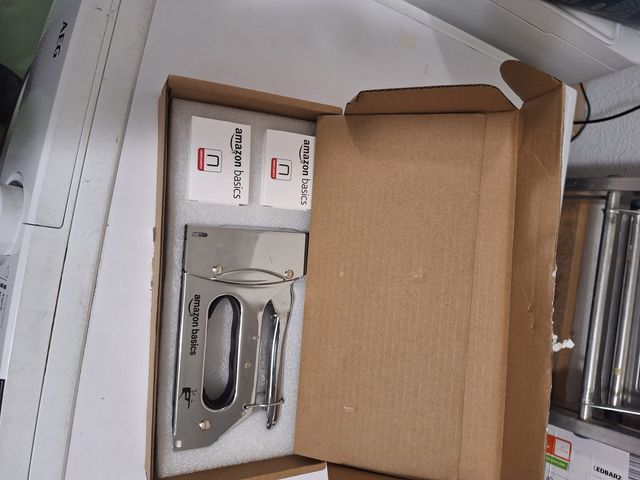 Detalles del productoGrapadora de mano Amazon Basics, ideal para uso doméstico o de oficina. Su diseño es metálico y resistente.